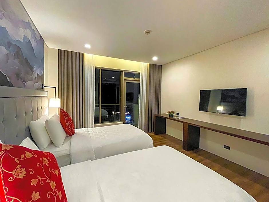 A seating area with a flat-screen TV, a desk, a balcony and a private bathroom are available in this spacious twin room. The unit has 2 beds.