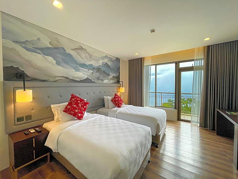 A seating area with a flat-screen TV, a desk, a balcony and a private bathroom are available in this spacious twin room. The unit has 2 beds.